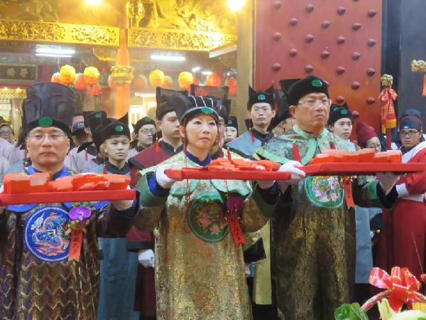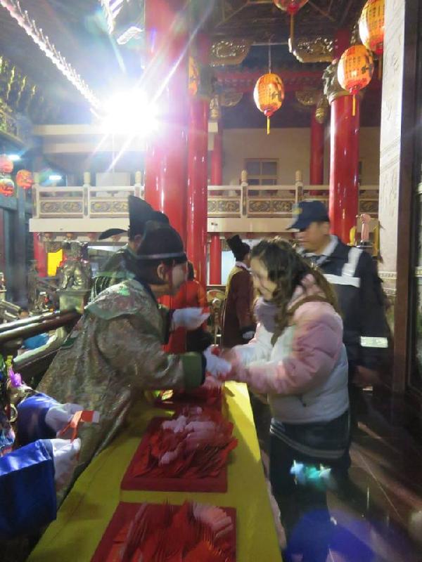 鹿耳門天后宮年夜祭,為所有受難的災民祈福,也為全體救難英雄祝禱,亡者安息,尚待救援者,早日脫困。救難迎雄們。平安、健康。上再待救援者早日獲救。 今年的賀歲大臣有代表事長的顏存左副市長、和代表小瑛總統的立委陳亭妃,賀財務大臣的沈理事長。從登洲、到祝禱上蒼、和致詞時,都不忘為上蒼祈求賜福災民,離苦得樂、早日康復、早日獲救,讓救難英雄身強體壯,能更早發現救難者,早日脫困。 上香祭拜後,隨即發放歲錢,也由顏副市長、陳亭妃立委和審理市長一起發放,大家大排長羅的等待領取歲錢,同時鹿耳門天后宮,也煮備了湯圓讓家,祛寒、保暖、止飢。非常的貼心。回家時,仍是長龍,等待領受媽祖的平安歲錢。