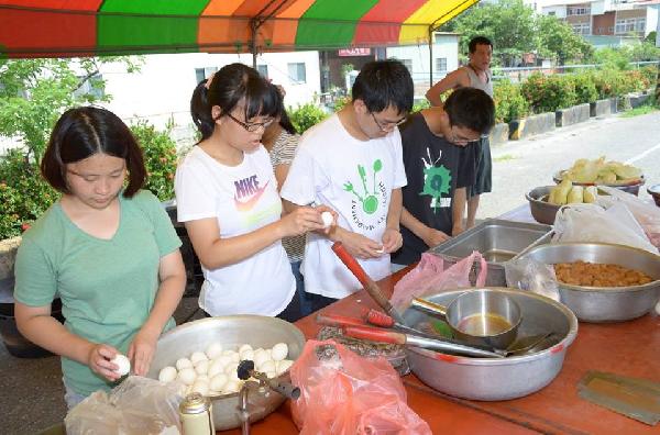 鹿耳社區與南台科技大學魔法廚藝社聯合舉辦「感恩的五月-慶祝母 親節活動」,並由南台科大布袋戲研究社、國標舞社、攝影社協辦,一起在鹿耳社區「五分車驛站」,以外燴、野台戲的方式,別開生面的辦理慶祝母親節活動,讓鹿耳、顯宮兩里鄉親共度一個快樂、愉悅的假日。 鹿耳社區自力辦理「台江風雲-鹿耳傳情文化季系列活動」之「感恩的五月-慶祝母親節活動」,有別其他社區,結合學校的社團共同辦理慶祝母親節活動,並擴及鄰近社區媽祖宮社區。鹿耳社區與南台科大魔法廚藝社共同合辦此一活動,目的除讓兩社區鄉親歡度母親節外。也能共同分享,南台科大學生社團的學習成果。 因此在幾經會議磋商後,決定以外燴、野台戲的方式來呈現。 昨日的餐點、餐食全由魔法廚藝社的同學,在蔡金雪老師、蔡登進經理的指導下,完成了五道佳餚美食。同時場地的布置、整理,也全部由同學們打理,再加上優美的國標舞表演、教學、布袋戲研究社同學精彩的表演、操控。連川劇「變臉 」都展現出高超的技巧、流利逗趣的口白、木偶和鄉親的互動表演。讓鄉親們深深覺得,今年的母親節,過得充實又愉悅。 貼心的魔法廚藝社的同學們,更為現場餐與的長輩準備的精心的禮品;讓長輩感受到滿滿的關懷與愛,最後在鄉親熱烈的掌聲中,結束了母親節的慶祝活動。除了合照留念外,在蔡金雪老師的指導下,同學們非常迅速協助場地復原整理。參加活動的魔法廚藝社葉佳宇同學說:「感謝鹿耳社區,提供一個機會和場地,給我們有學習的機會能為長輩服務、烹煮。」雖然廚藝不是很精湛,但透由這次的活動,讓我們體驗的外燴廚師們的辛勞,看見長輩對我們烹煮的食物,非常捧場、讚口不絕,內心感到十分的榮幸,希望能有機會,再次來未長輩們烹煮、送餐。