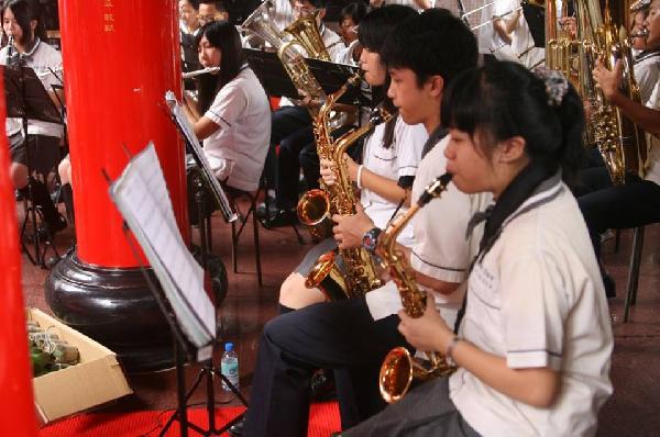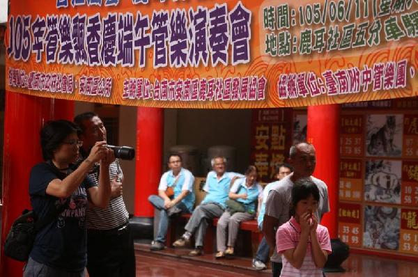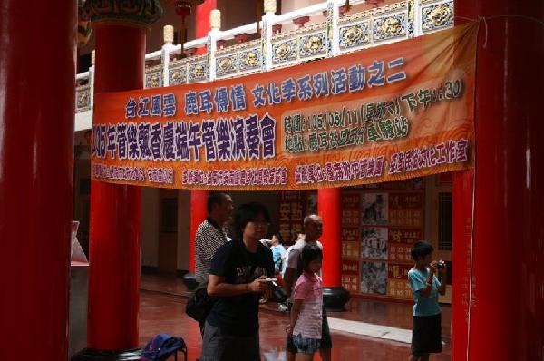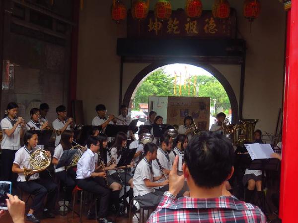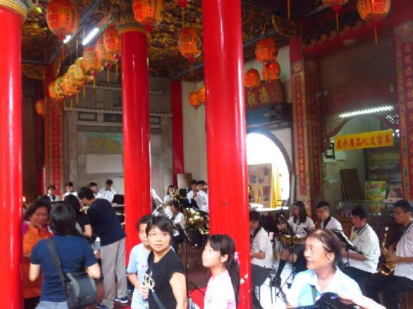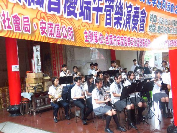 台江風雲 鹿耳傳情 鹿耳社區文化季系列活動之二 管樂飄香慶端午 管樂演奏音樂會,因雨更改在鹿耳門天后宮。的廟前三仙部口演奏。感謝,南大附中管樂隊冒雨。 參加台江風雲鹿耳傳情,鹿耳社區文化季系列二,管樂飄香慶端午,管樂演奏會演出。因雨演出改在鹿耳門天后宮三仙廍口演出,獲得鄉親和遊客熱烈讚賞。 感謝南化國小莊蓉芷主任,捐贈,250株蝴蝶蘭。作為觀賞邻聽的獎勵。同時感謝社造老友 吳璇蔆、宋金山等老友前來捧場。祝福。