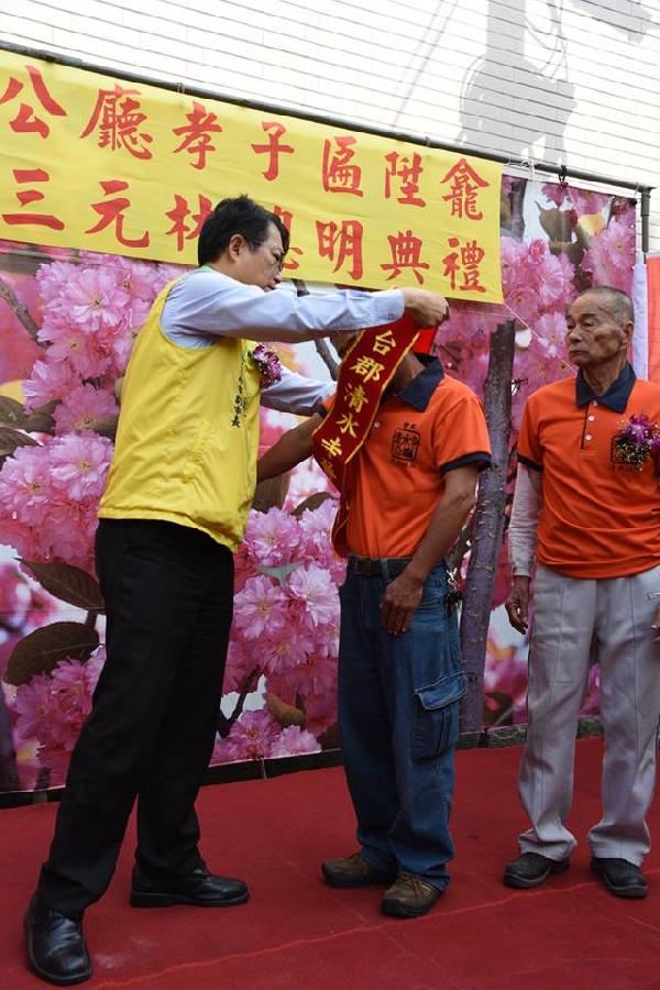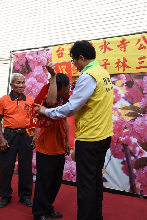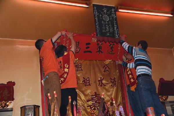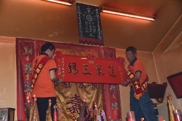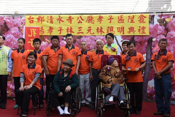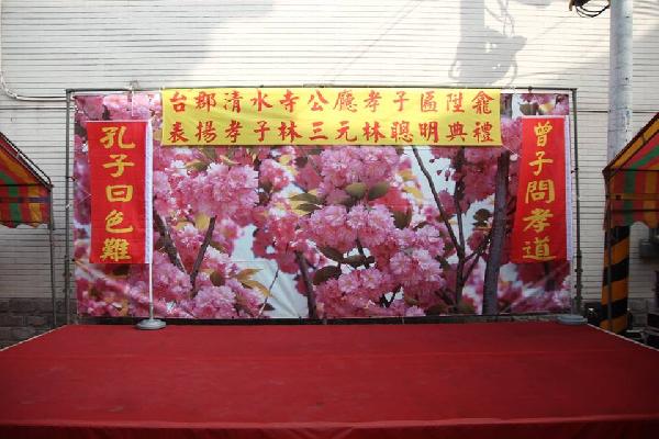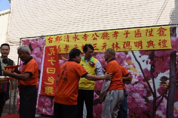 台南市安南區總安街清水寺公廳為宣揚暨彰顯孝道,於12月4日晉匾昇龕,由廟方主祀清水祖師,降鑾指定由林三元、林聰明當今孝子兄弟,共同為蓬萊三錫匾額晉匾,由兩位孝子掛匾,藉此表揚林氏兄弟,至善大孝,此次蓬萊三錫匾亦可謂是「孝子匾」。 昨日的晉匾典禮由顏純左副市長、副議長陳亭妃立委為兩位兄弟孝子披彩帶,並共同揭匾,為此次的晉匾昇龕活動,留下歷史的時刻,顏副市長在致詞時,特別表彰,林氏兄弟事親至孝的事蹟,向大家介紹林家昆仲,個性純樸,事親至孝,其母痼疾纏身二十載,日夜兄弟親自奉侍,不曾抱怨。十分難能可貴。而侍奉父母最難的就是「色難」,林家昆仲侍奉其母凡二十餘載,不曾有慍色,這和顏悅色態度十分的難能可貴。所以這次的晉匾昇龕活動,清水祖師公,也有感林氏昆仲的德行, 特指定由林家昆仲來晉匾昇龕、也是表揚林家兄弟的孝行。特別藉此次的活動,來表彰林家兄弟的孝行事蹟,就是在弘揚孝道的特殊意義與活動的重點。 昨日活動流程中,除了晉匾昇龕,也配本此次的活動,同時也辦理各項的民俗活動,更安排了「奉茶」 活動,由社區的模範母親代表,接受子女的感恩奉茶,同樣在表彰慈母的偉大情操。也為本次活動的另一孝親實例,更是表彰孝道的方法之。感謝顏副市長、陳亭妃、黃偉哲立委、王錦德、李中岑議員,唐碧娥議員秘書、葉宜津立委秘書、郭副議長服務處李主任、顏區長等親臨現場共襄盛舉,更感謝所有餐與演出得團體和鄉親。 何謂蓬萊三錫,是指清水寺公廳枝祖師公,曾三次前往蓬萊祖廳謁祖,藉此教化信眾,飲水思源,不可忘本,推己及人,進而期勉大家要進人倫大孝,千萬不可忽略。所以藉由此次孝子掛此蓬萊三錫匾,來提倡孝道。 總安街清水寺公廳為籌辦此次活動,於訪查中探尋中,訪得林氏兄弟,並將林氏兄弟事蹟,向清水祖師公祖稟報,經由扶鸞指示:本次活動的晉匾昇龕活動,由林氏昆仲,擔任昇匾的主要角色。並將其孝行事蹟公諸於世,作為弘揚孝道的範本。